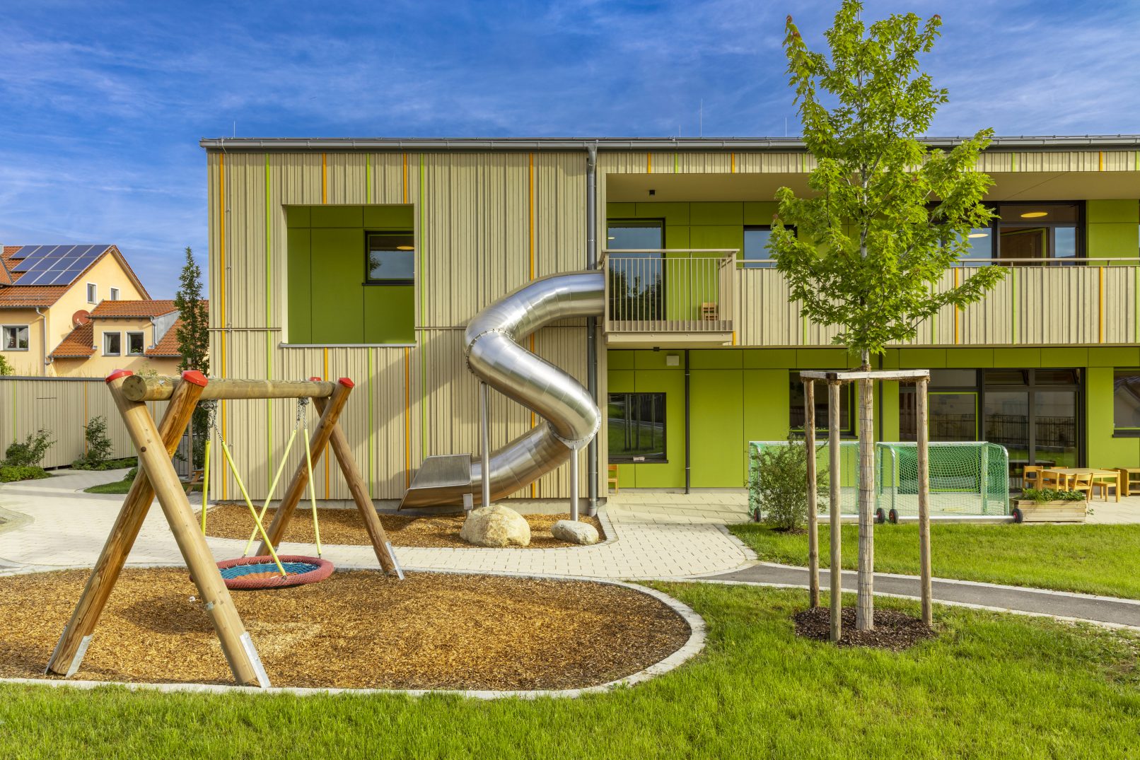 Neubau einer Kindertagesstätte mit fünf Kindergartengruppen und zwei Krippengruppen in Zusmarshausen.